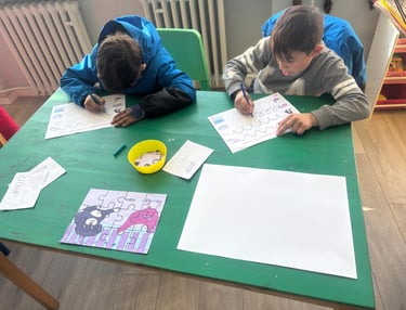 După ce au ascultat cu mare atenție și interes povestea, copiii au fost împărțiți în patru centre, fiecare cu un nivel diferit de dificultate, pentru a putea lucra în ritmul propriu. Cei mai mari i-au sprijinit pe cei mai mici, ajutându-i să rezolve fișele mai complexe, iar astfel, fiecare copil a avut ocazia să treacă pe rând prin toate centrele, învățând și colaborând împreună.
