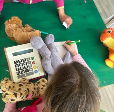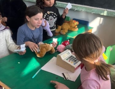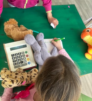 Economia financiară și gestionarea banilor trebuie învățate încă din copilărie, iar atunci când acest proces este transformat într-un joc, devine mult mai captivant. Să ai bani și să mergi la magazin pentru a cumpăra o jucărie sau dulciuri este destul de simplu, dar lucrurile devin mai interesante atunci când tu ești cel care trebuie să gestionezi un magazin. Astfel, prin activitatea „Magazinul de plușuri”, copiii au început prin a-și câștiga banii, rezolvând probleme de matematică, orientare în spațiu, figuri geometrice și învățând să folosească corect diverse instrumente matematice. Fiecare activitate avea un preț, iar la final copiii trebuiau să adune banii câștigați. După ce toți au finalizat prima probă, fiecare a primit etichete de preț pentru a evalua cât ar costa o jucărie și a scrie prețul acesteia. Vedeta activității a fost casa de marcat inteligentă. Fiecare copil a avut rolul de vânzător, dar și de client al magazinului de plușuri. La final, fiecare a plecat acasă fericit, cu câte două plușuri alese. Antonia a spus: „Doamna, când o să fiu mare, vreau să devin vânzătoare și să am magazinul meu!”