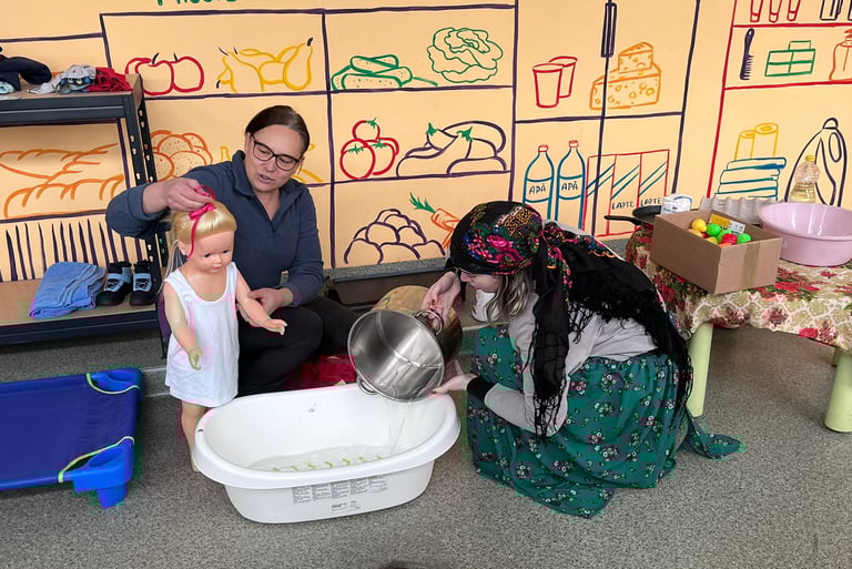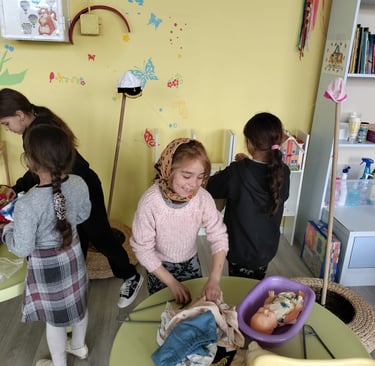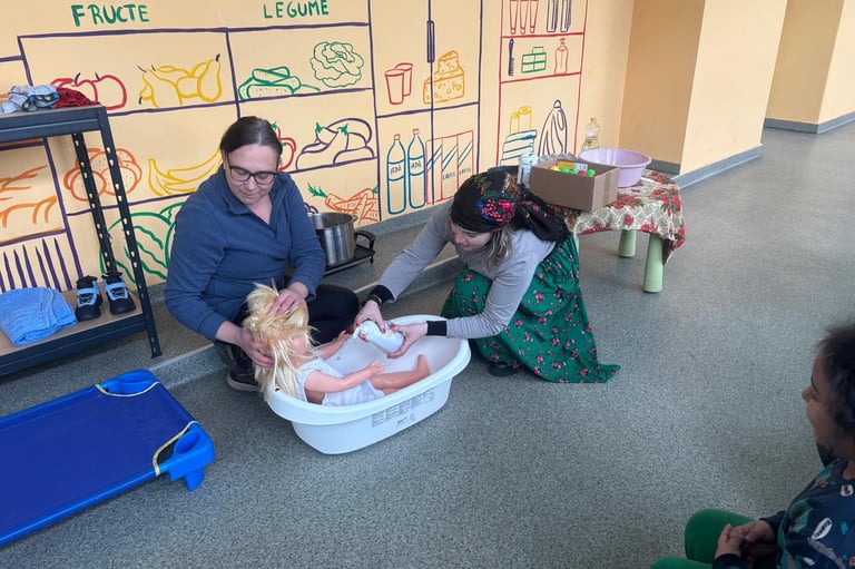 Îngrijirea de sine este o formă de iubire, atât pentru tine, cât și pentru cei din jur. Pentru a le sublinia copiilor importanța acestui aspect, dar și a igienei personale, Doamna Claudia și Estera au creat un joc de rol. Estera a interpretat rolul unei mame din comunitate, iar doamna Claudia a fost fetița care dorea cu insistență să facă baie, în ciuda frigului de afară și a lipsei de apă, care trebuia adusă cu bidoanele de cinci litri de la periferia comunității. Fetița, determinată să se spele, a explicat că învățătoarea le-a vorbit la școală despre cât de importantă este igiena personală.