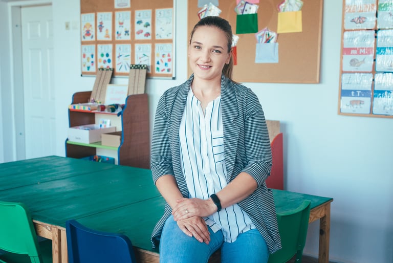 Organizează și susține activitățile grupei mari de copii înscriși la centrul de zi, cu tact, răbdare și empatie pentru nevoile fiecărui copil. Are vocația muncii de teren și coordonează activitatea de mediere între familiile din comunitate și instituțiile relevante.